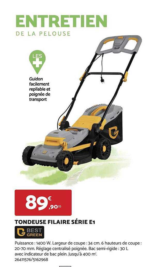 Découvrez l'offre de Tondeuse Filaire Série E1 chez Bricomarché! Cette offre fantastique est maintenant disponible dans le nouveau catalogue de Bricomarché. Profitez de cette occasion et économisez considérablement sur votre achat.
