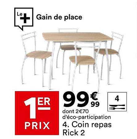 Découvrez une promotion incroyable sur le coin repas Rick 2, parfait pour apporter une touche moderne et fonctionnelle à votre espace. Idéal pour les petits appartements ou les espaces réduits, ce mobilier optimisé contribue à un gain de place tout en restant élégant.