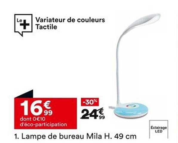 Découvrez la lampe de bureau Mila, une solution d'éclairage moderne et fonctionnelle qui allie style et praticité. Avec son design élégant et ses fonctionnalités innovantes, cette lampe est idéale pour créer une ambiance agréable dans votre espace de travail ou de détente. Cette offre exceptionnelle permet d'acquérir cette lampe à un prix réduit, une véritable aubaine pour équiper votre intérieur avec goût.