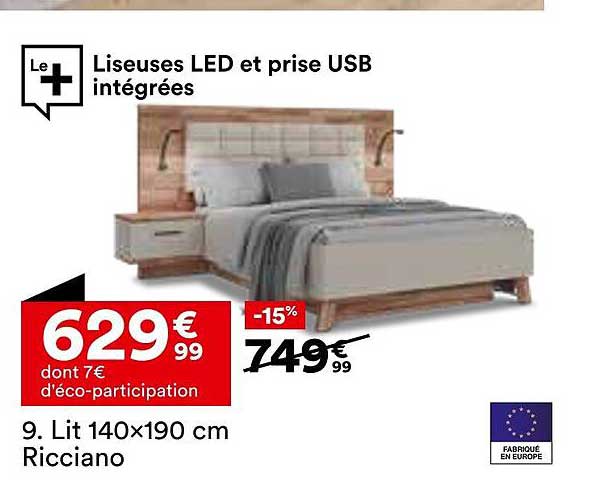 Le lit Ricciano est conçu pour répondre à vos besoins quotidiens tout en offrant un confort inégalé. Que vous soyez un lecteur passionné ou que vous préfériez vous détendre avec votre smartphone, les liseuses LED et la prise USB intégrées facilitent l'accès à vos appareils tout en créant une ambiance chaleureuse et apaisante.