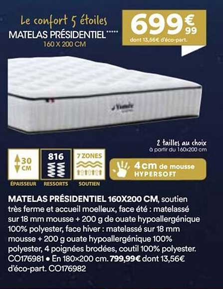 Découvrez dès maintenant la offre MATELAS PRÉSIDENTIEL 160 X 200 CM dans le catalogue de BUT. Cette offre est valable du 06/10/2025 au 25/10/2025.