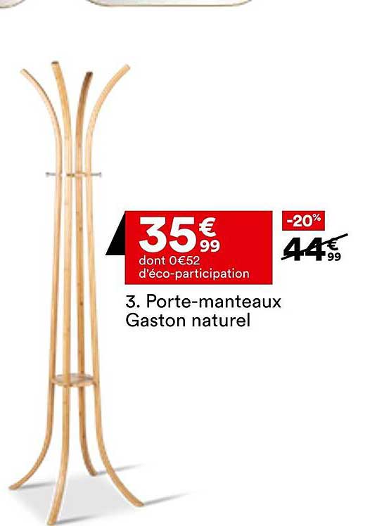 Cette offre spéciale vous permet d’acquérir le porte-manteaux Gaston au prix exceptionnel de 35,99 €, soit une réduction de 20 % par rapport au prix habituel de 44,99 €. Vous réalisez ainsi une économie de 9 € tout en ajoutant un élément de rangement chic à votre foyer.