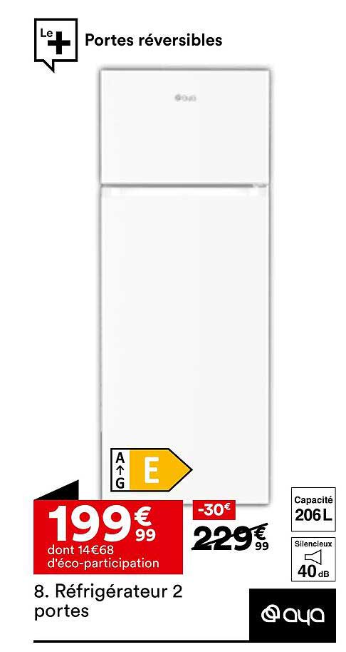 Découvrez une offre spéciale sur un réfrigérateur 2 portes, parfait pour garder vos aliments frais tout en ajoutant une touche d’élégance à votre cuisine. Avec sa capacité généreuse de 206 litres, cet appareil se révèle être un allié indispensable au quotidien.