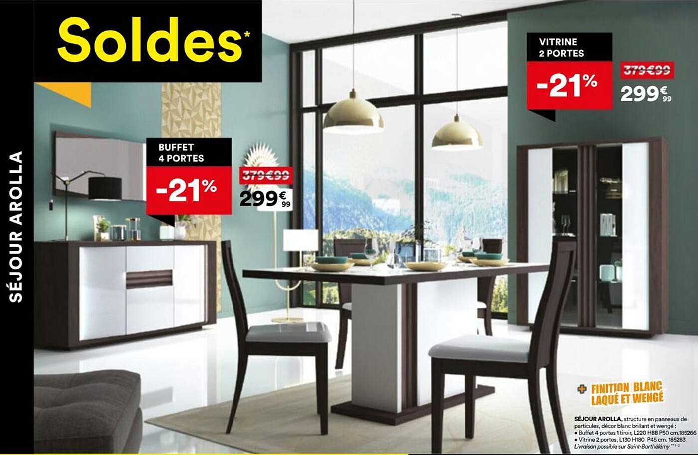 Découvrez une promotion exceptionnelle sur le mobilier de votre salle à manger avec le Séjour Arolla, qui offre un buffet à 4 portes et une vitrine à 2 portes, tous deux à -21%. Ces meubles allient élégance et fonctionnalité, parfaits pour embellir votre intérieur tout en offrant un rangement optimisé.