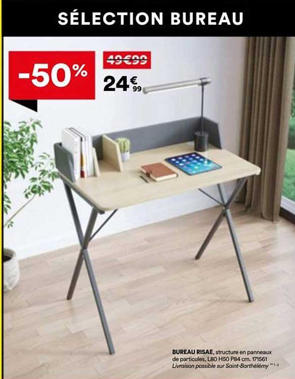 Si vous êtes à la recherche d'un bureau élégant et fonctionnel, cette offre de BUT est faite pour vous ! Profitez d'une réduction de 50 % sur ce modèle de bureau Risae, idéal pour aménager votre espace de travail à domicile. Il allie praticité et design moderne, rendant votre environnement de travail plus agréable.