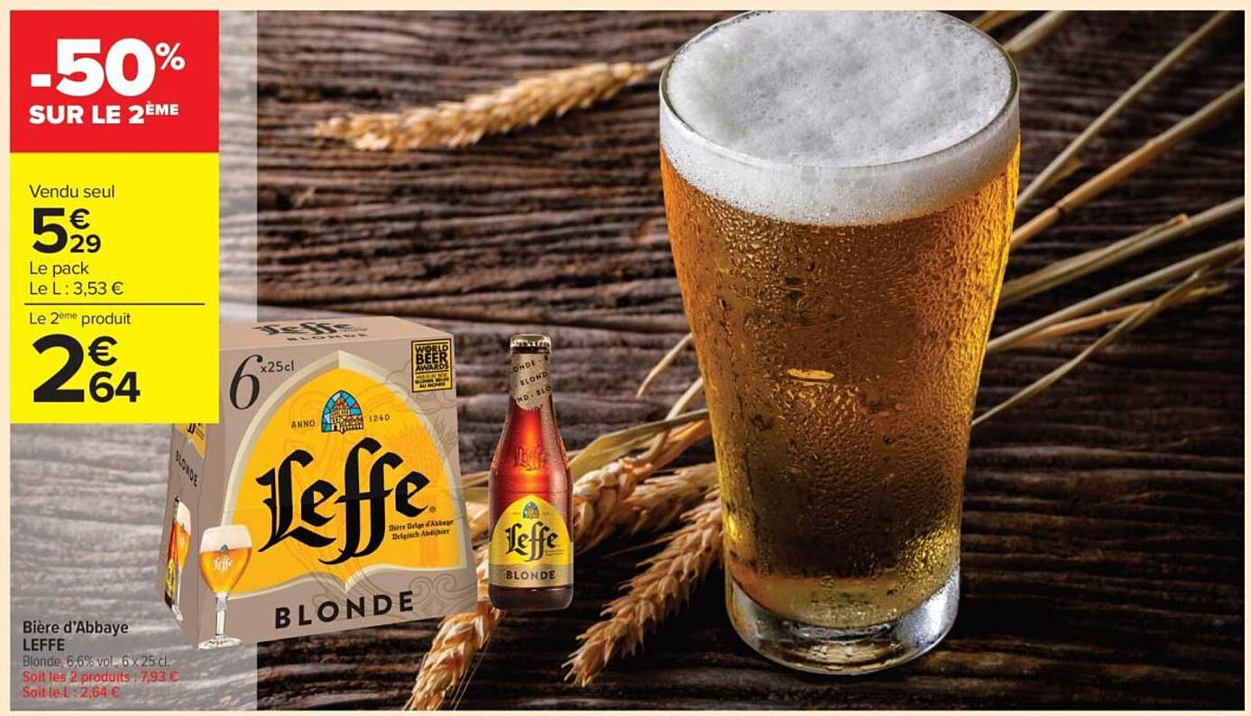 Vous êtes amateur de bonnes bières ? Ne manquez pas cette incroyable promotion sur la Bière d'Abbaye Leffe Blonde ! Du 21 octobre au 2 novembre 2025, profitez d'une réduction de 50% sur le deuxième produit, une occasion rêvée pour explorer ce goût unique.