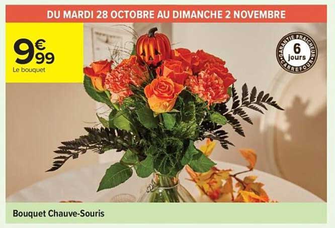 Découvrez dès maintenant la offre Bouquet Chauve-Souris dans le catalogue de Carrefour Contact. Cette offre est valable du 21/10/2025 au 02/11/2025.