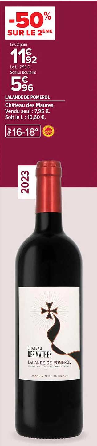 Découvrez dès maintenant la offre Château des Maures Lalande de Pomerol dans le catalogue de Carrefour Contact. Cette offre est valable du 23/09/2025 au 05/10/2025.