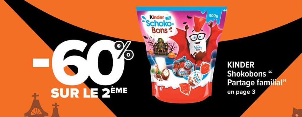 Les Kinder Shokobons “Partage familial” sont un véritable délice qui ravira petits et grands ! Avec cette promotion, vous pouvez profiter de -60% sur le deuxième paquet, une occasion à ne pas manquer pour faire le plein de douceur et de régal.