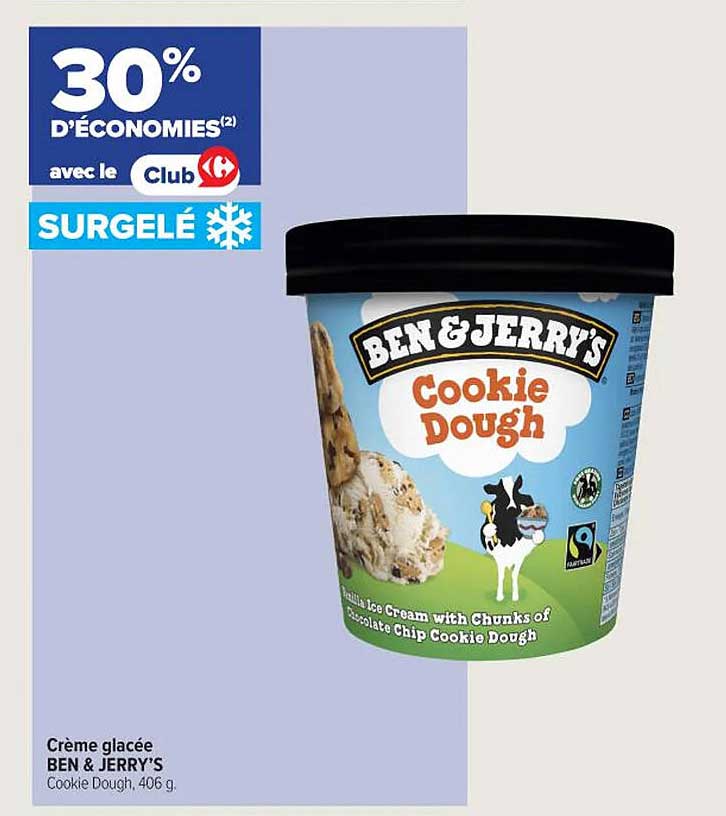 Régalez vos papilles avec la délicieuse crème glacée BEN & JERRY'S Cookie Dough ! Profitez d'une promotion incroyable où vous pouvez économiser jusqu'à 30 % grâce au Club Carrefour. Parfaite pour les amateurs de douceurs, cette crème glacée allie la vanille onctueuse à des morceaux de pâte à cookie au chocolat, créant une expérience gustative unique.