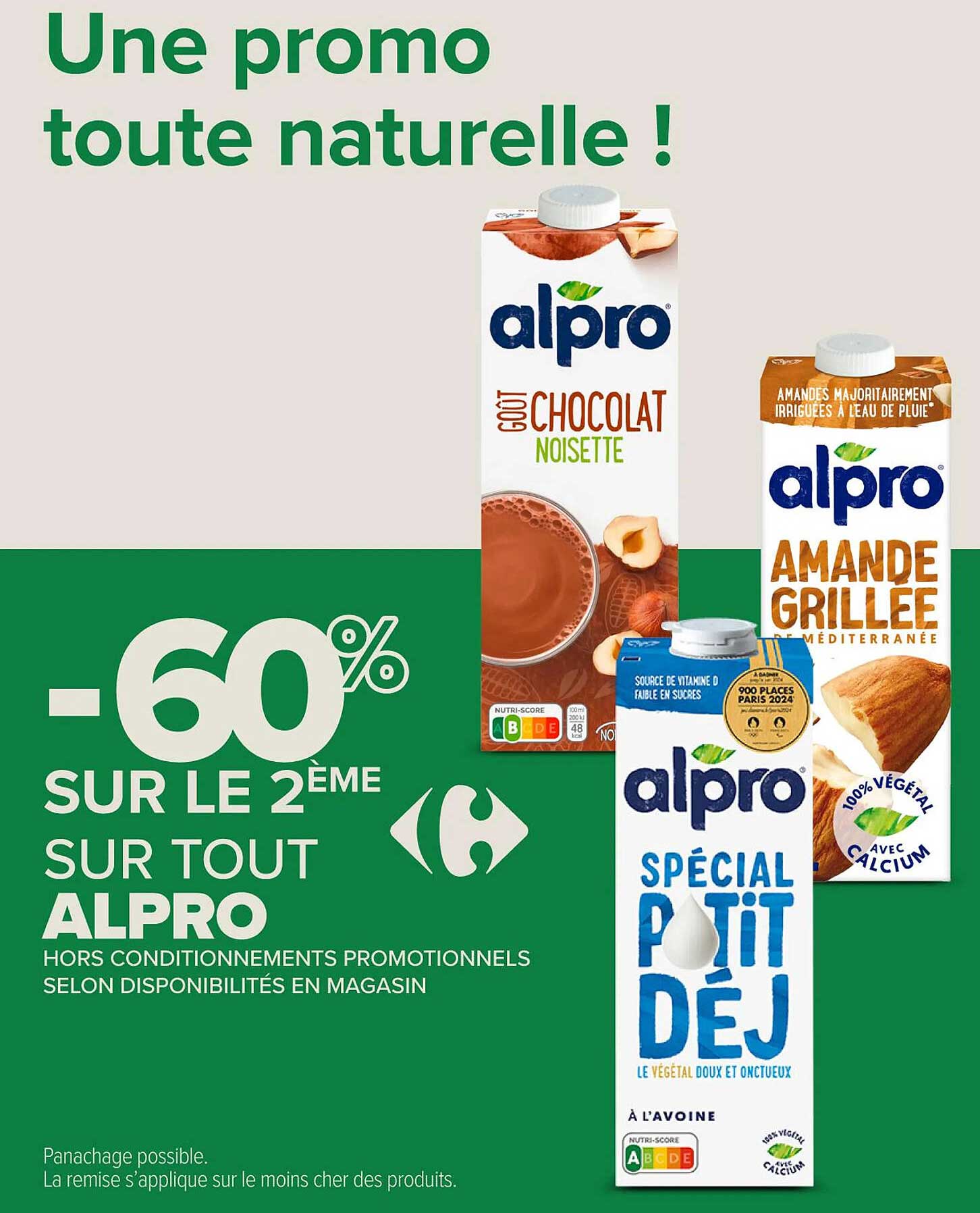 Découvrez notre incroyable promotion sur les produits Alpro ! Du 25 mars au 6 avril 2025, profitez de -60% sur le deuxième produit Alpro. Que vous soyez amateur de boissons végétales ou que vous souhaitiez simplement essayer quelque chose de nouveau, c'est l'occasion rêvée pour faire le plein de saveurs.