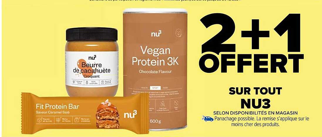 Offre de 2+1 Offert Sur Tout Nu3 chez Carrefour Market