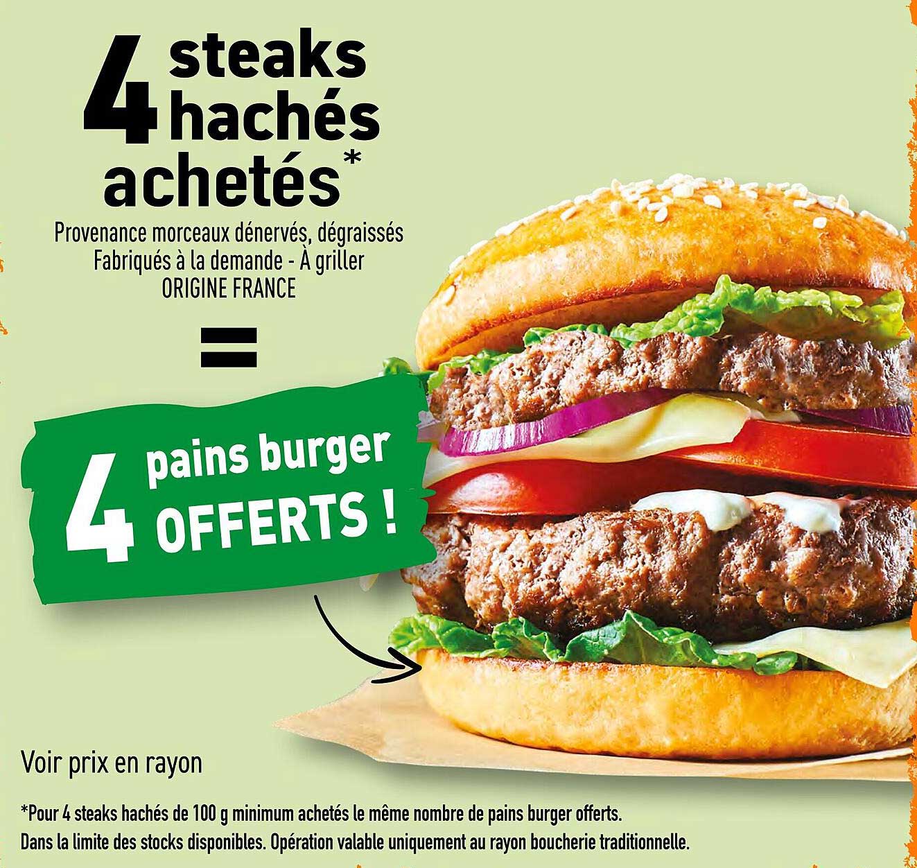 Découvrez le 4 Steaks Hachés Achetés* = 4 Pains Burger Offerts !