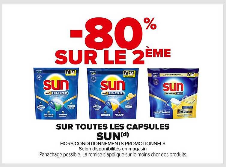 Vous cherchez un moyen efficace de simplifier votre routine de vaisselle ? La promotion actuelle sur les capsules SUN vous offre une opportunité en or ! Du 25 novembre au 7 décembre 2025, vous pouvez bénéficier d'une réduction exceptionnelle de 80% sur le deuxième produit acheté. Imaginez, vous remplissez votre placard de capsules performantes tout en économisant !