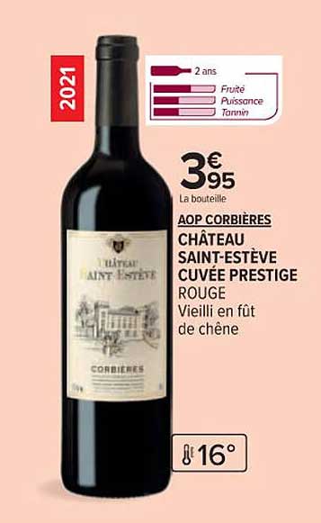 Offre de Aop Corbières Château Saint-Estève Cuvée Prestige Rouge chez Carrefour Market
