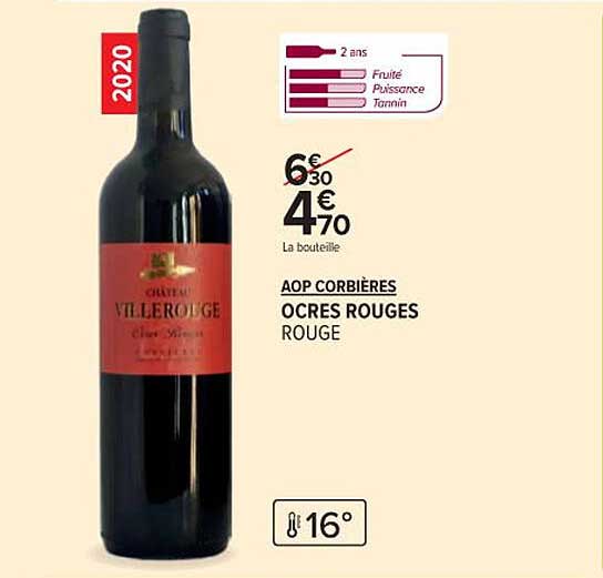Offre de Aop Corbières Ocres Rouges Rouge chez Carrefour Market