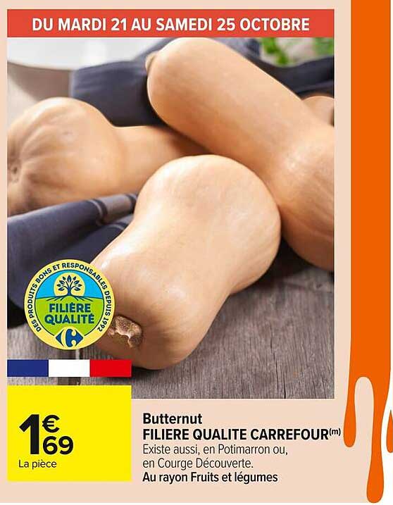 Découvrez dès maintenant la offre Butternut FILIERE QUALITE CARREFOUR(m) dans le catalogue de Carrefour Market. Cette offre est valable du 21/10/2025 au 02/11/2025.
