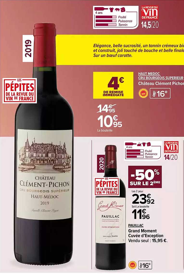 Découvrez l'offre de Château Clément-Pichon Cru Bourgeois Supérieur Haut-Médoc 2019 chez Carrefour Market! Cette offre fantastique est maintenant disponible dans le nouveau catalogue de Carrefour Market. Profitez de cette occasion et économisez considérablement sur votre achat.