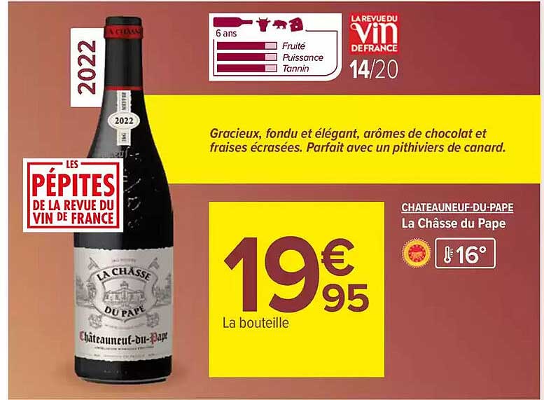 Découvrez l'offre de Châteauneuf-Du-Pape La Chasse Du Pape chez Carrefour Market! Cette offre fantastique est maintenant disponible dans le nouveau catalogue de Carrefour Market. Profitez de cette occasion et économisez considérablement sur votre achat.