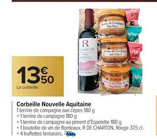 Plongez dans les saveurs du terroir avec la Corbeille Nouvelle Aquitaine, une sélection gourmande qui ravira vos papilles. Proposée à un prix exceptionnel, cette corbeille est parfaite pour vos apéritifs entre amis ou pour offrir à vos proches. Du 2 au 14 décembre 2025, profitez de cette offre exclusive qui met en avant la richesse de la gastronomie française.
