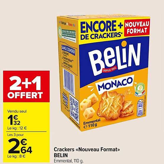 Découvrez l'offre de Crackers « Nouveau Format » Belin chez Carrefour Market! Cette offre fantastique est maintenant disponible dans le nouveau catalogue de Carrefour Market. Profitez de cette occasion et économisez considérablement sur votre achat.