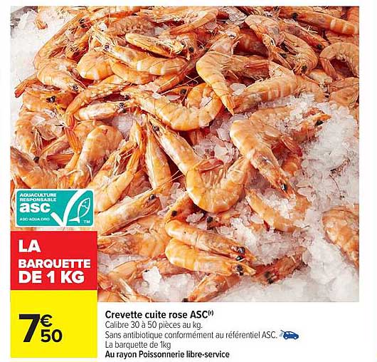 Découvrez les délicieuses crevettes cuites roses ASC®, parfaites pour toutes vos recettes. Offrez à votre famille et à vos amis un plat savoureux et gourmet tout en profitant d'une promotion exceptionnelle chez Carrefour Market ! Ces crevettes, issues d'une aquaculture responsable, sont idéales pour un apéritif, en salade ou en plat principal.