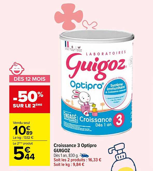 Offre de Croissance 3 Optipro Guigoz chez Carrefour Market