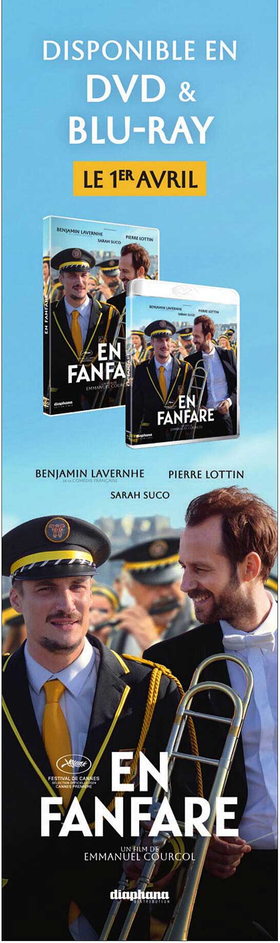 Vous recherchez un film qui apporte à la fois rires et émotions ? À partir du 1er avril, le film « En Fanfare » sera disponible en DVD et Blu-ray ! Avec une distribution talentueuse incluant Benjamin Lavernhe et Pierre Lottin, ce film promet de vous divertir tout au long de son visionnage. Profitez de cette occasion pour ajouter une œuvre acclamée à votre collection.