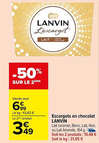 Offre de Escargots En Chocolat Lanvin chez Carrefour Market