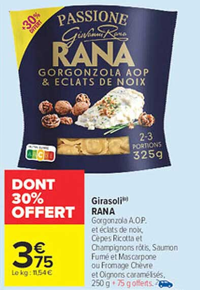 Découvrez l'incroyable Girasoli RANA, un délice italien qui allie le goût riche du Gorgonzola AOP aux éclats de noix. Cette offre exceptionnelle est une vraie aubaine pour les amateurs de pâtes fraîches à la recherche de saveurs authentiques et raffinées.