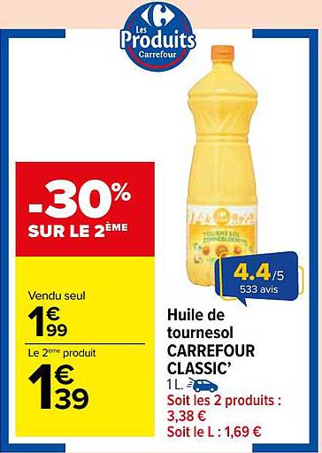 Découvrez le Huile De Tournesol Carrefour Classic’