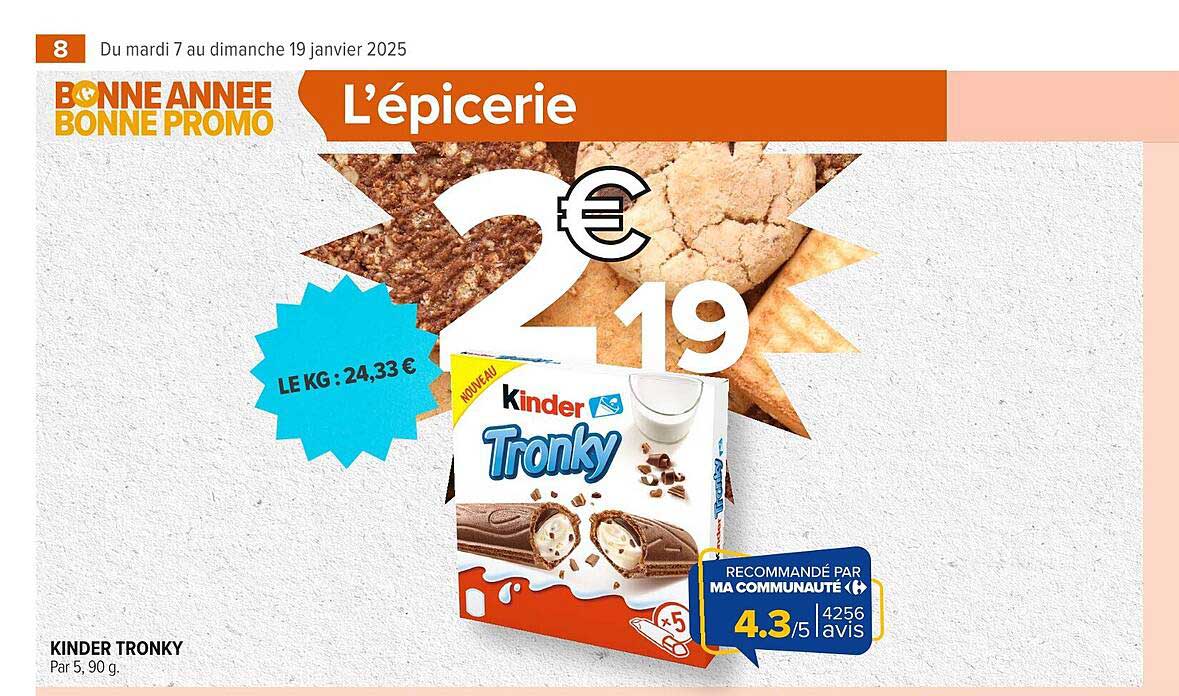 Découvrez l'offre de Kinder Tronký chez Carrefour Market! Cette offre fantastique est maintenant disponible dans le nouveau catalogue de Carrefour Market. Profitez de cette occasion et économisez considérablement sur votre achat.