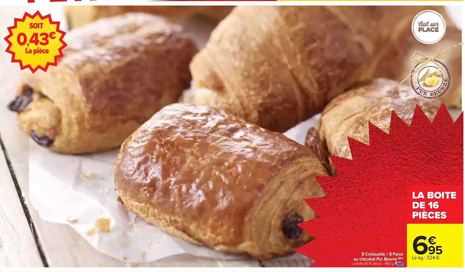 Êtes-vous prêt pour une explosion de saveurs au petit-déjeuner ? Ne manquez pas l’offre incroyable sur cette boîte de 16 pièces comprenant 8 croissants et 8 pains au chocolat pur beurre. Que vous les dégustiez avec un café le matin ou que vous les proposiez lors d’un brunch entre amis, ces viennoiseries sont parfaites pour toutes les occasions et raviront les papilles de toute la famille.