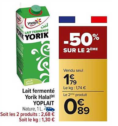 Offre de Lait Fermenté Yorik Halal Yoplait chez Carrefour Market