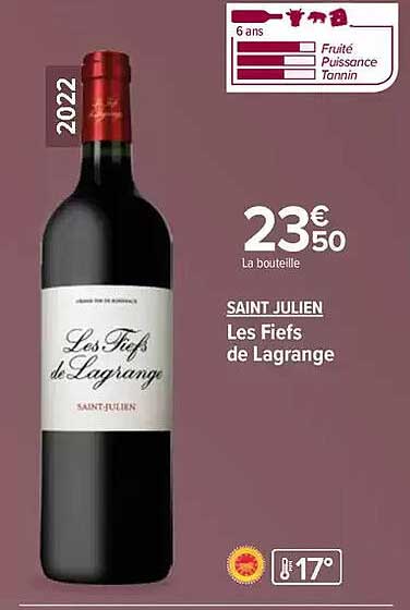 Découvrez l'offre de Les Fiefs De Lagrange chez Carrefour Market! Cette offre fantastique est maintenant disponible dans le nouveau catalogue de Carrefour Market. Profitez de cette occasion et économisez considérablement sur votre achat.