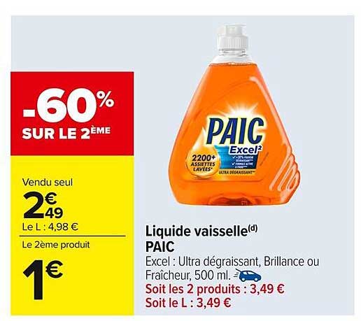Découvrez dès maintenant la offre Liquide vaisselle PAIC dans le catalogue de Carrefour Market. Cette offre est valable du 25/11/2025 au 07/12/2025.