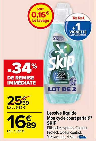 Offre de Lot De 2 Lessive Liquide Mon Cycle Court Parfait(D) Skip chez Carrefour Market