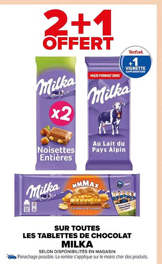 Offre de Milka : 2+1 Offert Sur Toutes Les Tablettes De Chocolat chez Carrefour Market