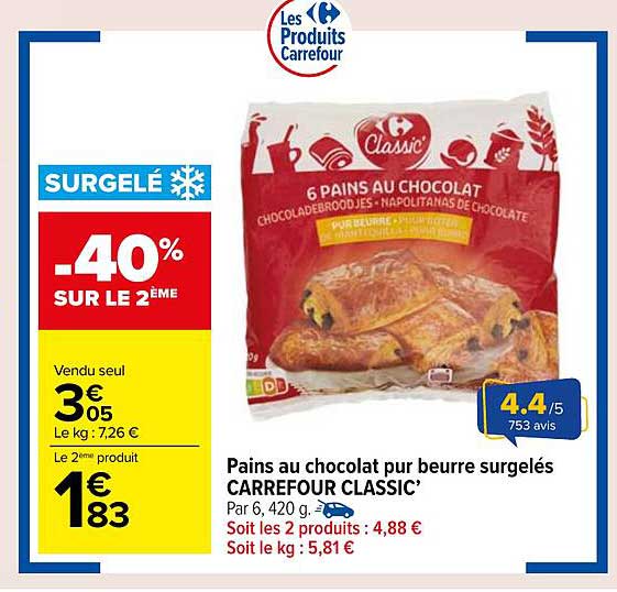 Offre de Pains Au Chocolat Pur Beurre Surgelés Carrefour Classic' chez Carrefour Market
