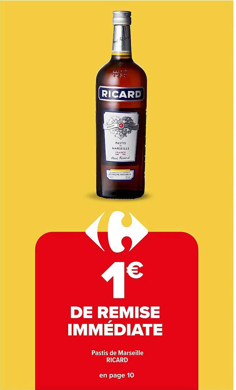 Profitez d'une remise exceptionnelle de 1€ sur le célèbre Pastis de Marseille RICARD. C'est l'occasion parfaite de redécouvrir cette boisson emblématique, idéale pour vos moments de détente et vos apéritifs ensoleillés.