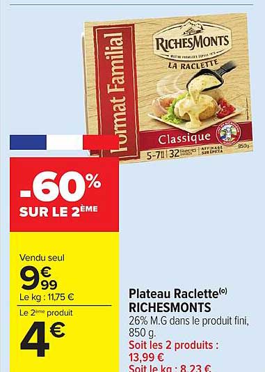 Offre de Plateau Raclette Richesmonts chez Carrefour Market