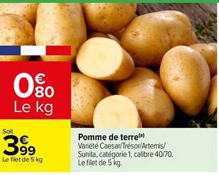 Les pommes de terre sont un incontournable dans toutes les cuisines ! Pour cette période exceptionnelle, Carrefour Market vous propose un filet de 5 kg de pommes de terre à un prix défiant toute concurrence. Avec une offre à seulement 0,80 € le kg, c'est l'occasion parfaite de garnir votre panier sans faire exploser votre budget. Imaginez les multiples recettes que vous pouvez réaliser avec ce savoureux tubercule, idéal pour accompagner vos plats ou préparer de délicieuses purées et gratins.
