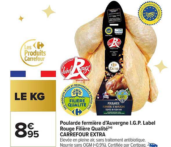 Offre de Poularde Fermière D'auvergne I.g.p. Label Rouge Filière Qualité(M) Carrefour Extra chez Carrefour Market
