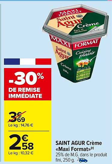 Découvrez dès maintenant la offre SAINT AGUR Crème «Maxi Format» dans le catalogue de Carrefour Market. Cette offre est valable du 04/02/2025 au 16/02/2025.