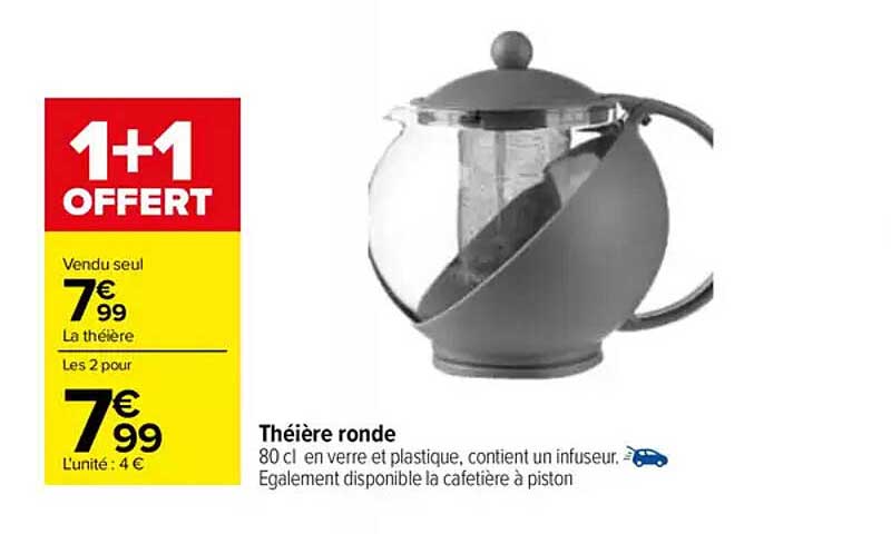 Découvrez l'offre de Théière Ronde chez Carrefour Market! Cette offre fantastique est maintenant disponible dans le nouveau catalogue de Carrefour Market. Profitez de cette occasion et économisez considérablement sur votre achat.