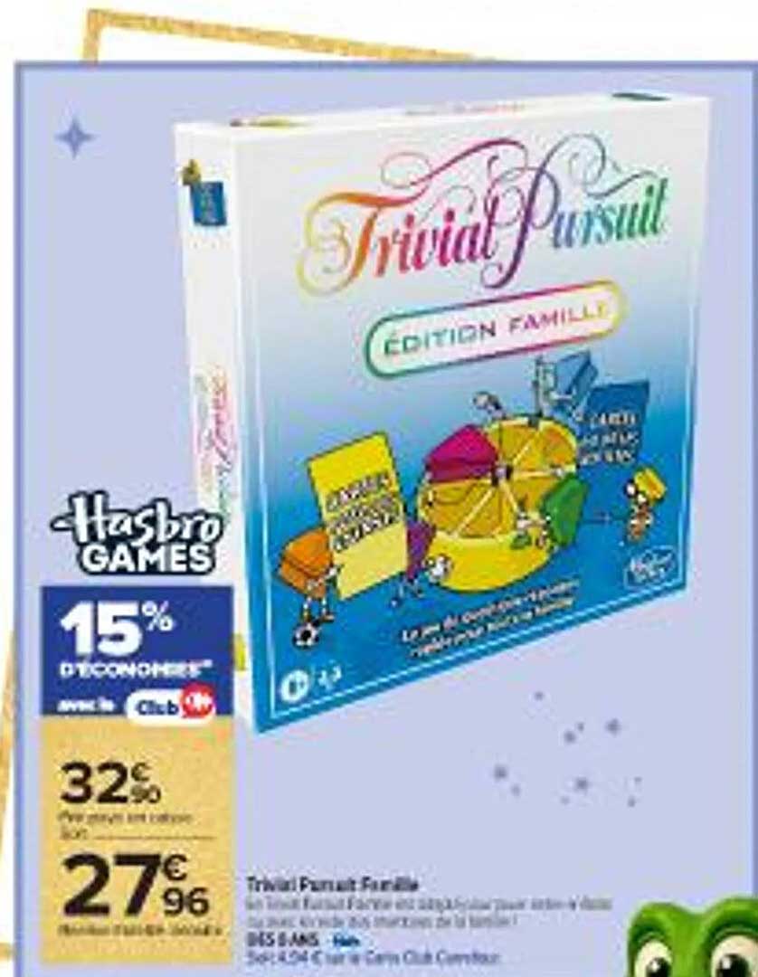 Découvrez dès maintenant la offre Trivial Pursuit Famille dans le catalogue de Carrefour Market. Cette offre est valable du 17/10/2025 au 24/12/2025.