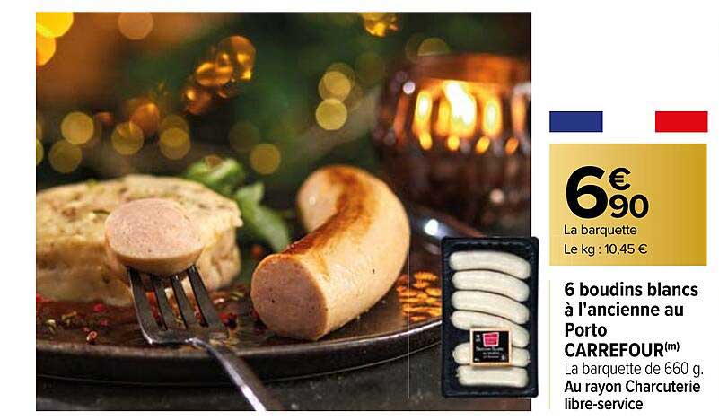 Découvrez dès maintenant la offre 6 boudins blancs à l'ancienne au Porto dans le catalogue de Carrefour. Cette offre est valable du 19/12/2024 au 31/12/2024.