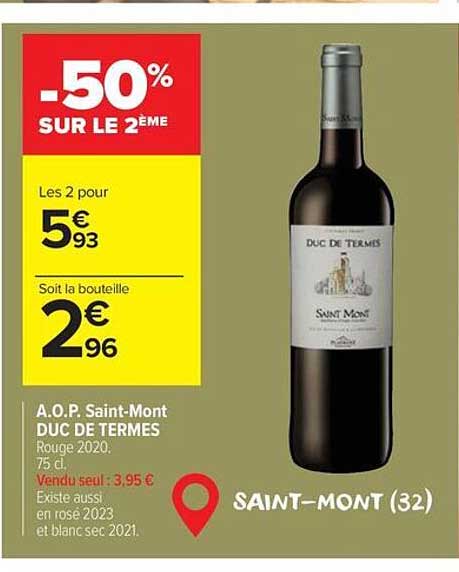 Offre de A.o.p. Saint-Mont Duc De Termes Rouge 2020 chez Carrefour