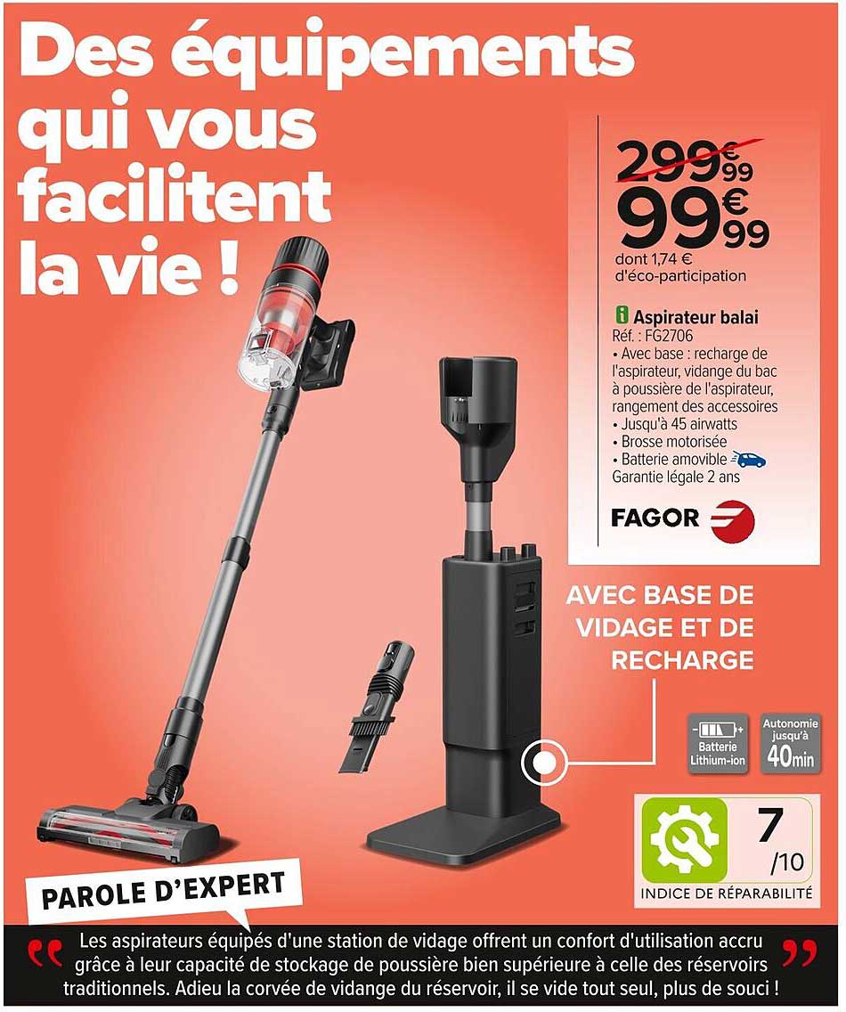 Découvrez l’aspirateur balai Fagor, un allié indispensable pour un nettoyage facile et efficace de votre intérieur. Avec cette promotion exceptionnelle, il devient accessible à tous ! L'offre est valable du 28 octobre au 17 novembre 2025, alors ne ratez pas cette occasion de simplifier votre quotidien.