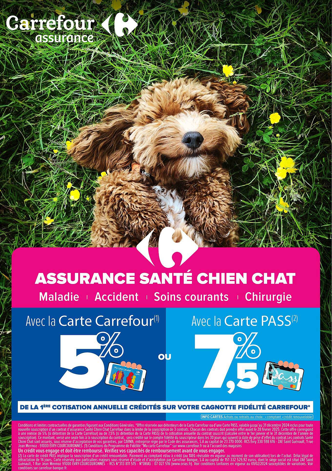 Découvrez dès maintenant la offre ASSURANCE SANTÉ CHIEN CHAT dans le catalogue de Carrefour. Cette offre est valable du 08/10/2024 au 21/10/2024.
